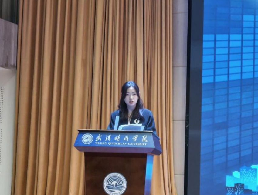 在优秀学长学姐分享结束后,2025 级计算机科学与技术专业新生代表刘睿斯同学紧接着上台发言,她表示,将以优秀的学长学姐为榜样,在未来的大学生活中主动提升专业能力、锤炼综合素养,以踏实的态度打好学习与成长的基础。此外,她还真挚地分享了自己对大学生活的憧憬与向往,传递出新生群体的朝气与期待。