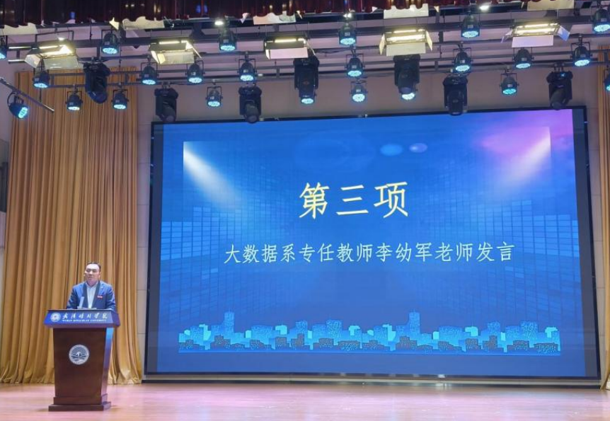 随后,由大数据系专任教师李幼军老师登台发言,为同学们带来专业指导。老师着重强调参加竞赛对计算机专业学生的重要性,他结合当前行业趋势,简要梳理并分析了计算机领域不同方向的主流竞赛,让同学们对各类竞赛有了更清晰的认知与了解。同时,李老师也特别提醒同学们,竞赛能力的提升离不开扎实的专业基础。他鼓励大家务必认真学习核心课程,刻苦钻研专业知识,只有将理论学深悟透,才能为后续的竞赛备赛筑牢根基,也为实践应用提供有力的理论支撑。