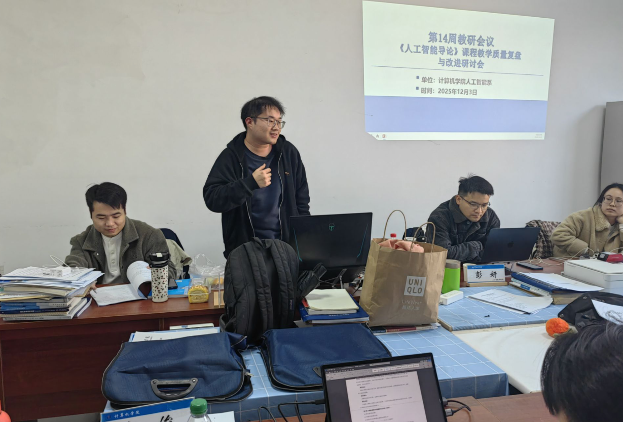 2025年12月3日,为响应2024版人才培养方案中“跨学科AI素养”的全新要求,切实强化《人工智能导论》这门全校性AI通识课程的建设质量,教学督导处与bevictor伟德官网人工智能系于综1-220联合召开课程改革研讨会。本次会议聚焦课程痛点精准发力,汇聚课程团队核心成员、各相关专业骨干教师及校教学督导共同参与研讨,旨在通过深度交流碰撞,为课程提质升级明确路径、凝聚共识。会议由人工智能系主任李珊枝教授主持,人工智能副系主任张倩副教授,宋俊、聂绩、彭妍、杨威、陈彦蓉、高武阳、黄亮、宋伸等教师出席,督导曾宪林教授全程参与并给予专业指导。